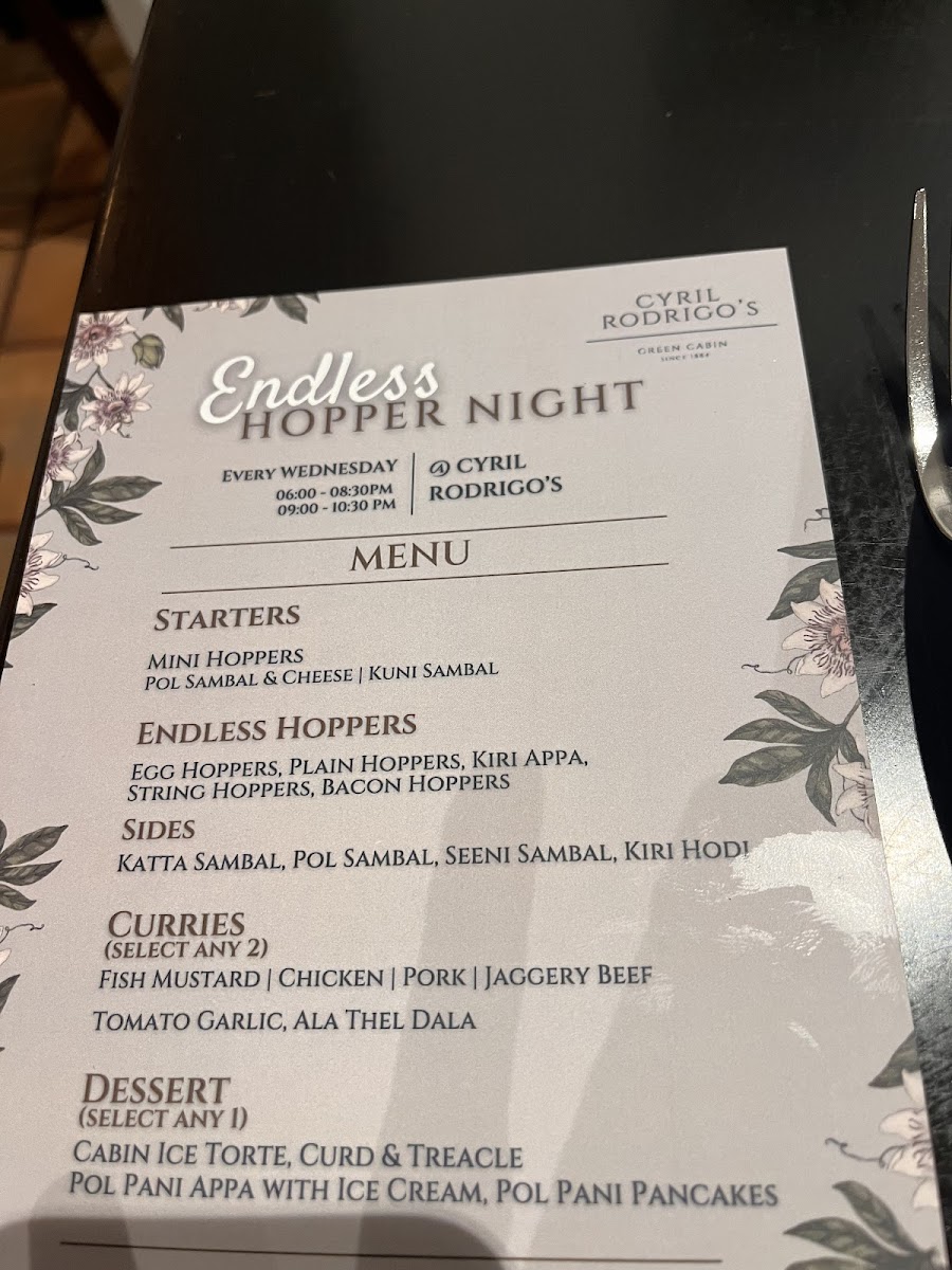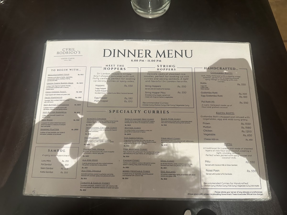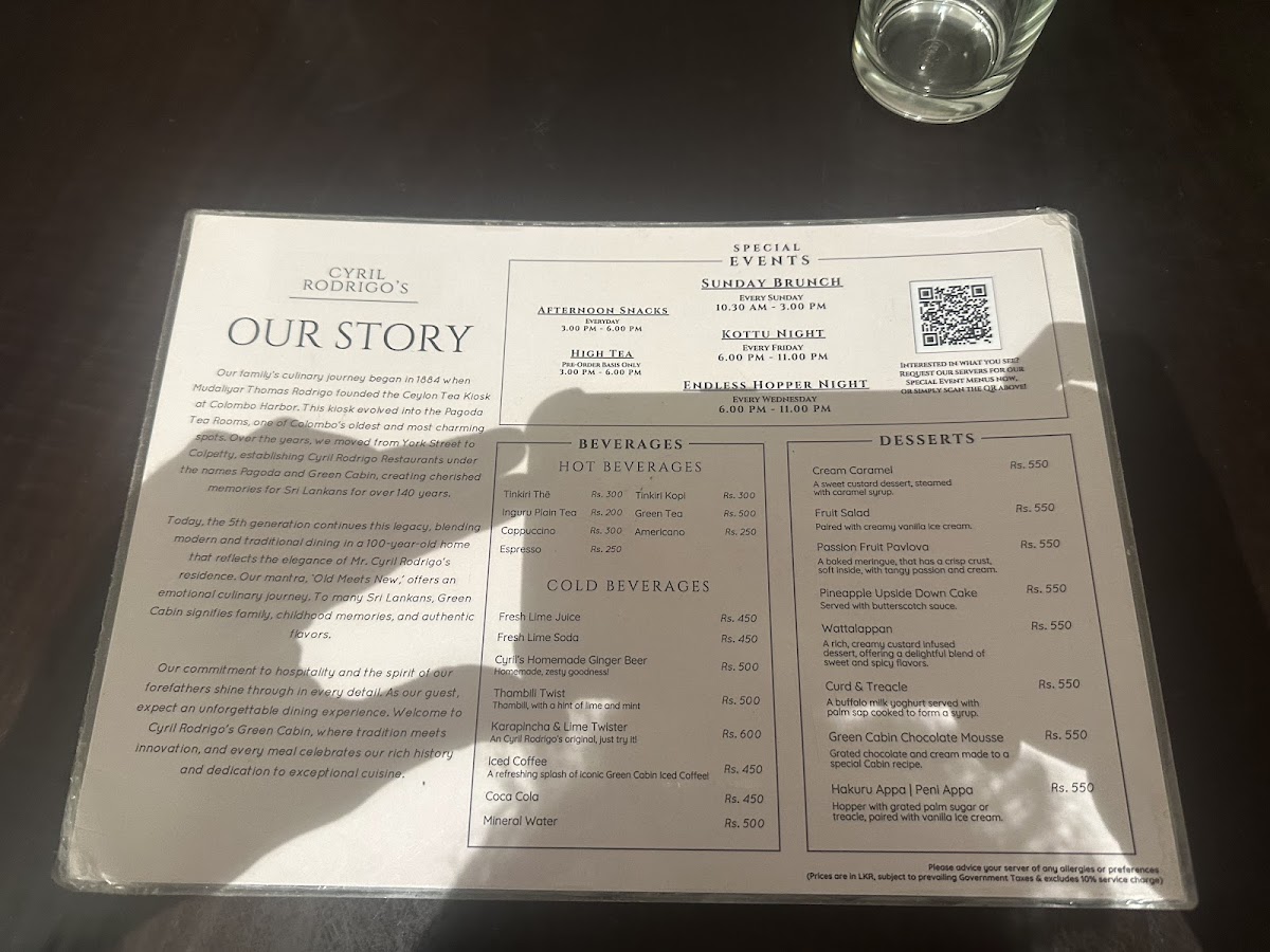 Introducing Cyril Rodrigo's Green Cabin—a culinary gem nestled in Colombo, Sri Lanka. This restaurant specializes in authentic Sri Lankan cuisine, offering diners an exquisite selection that delights the senses. With menu highlights such as the renowned egg hoppers and flavorful curries, the dining experience is a celebration of traditional flavors.
